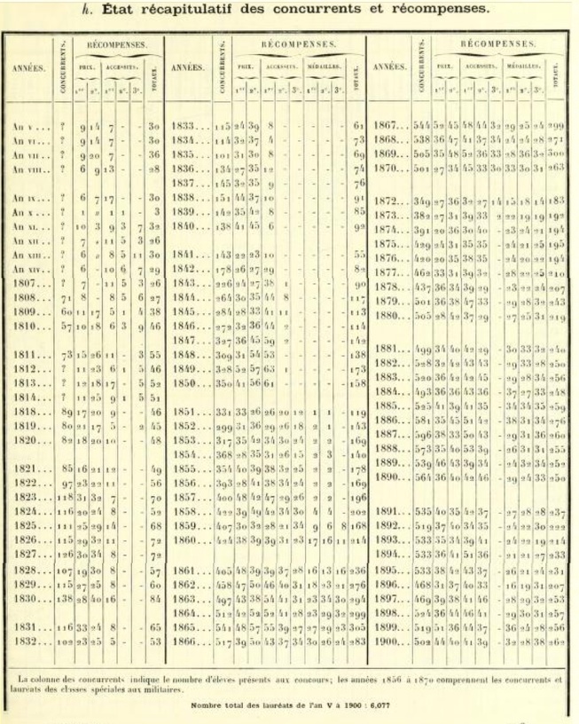 L’ensemble des résultats aux concours du Conservatoire, année par année 1797-1900